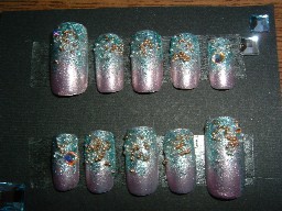 何よりもかっこよさを愛する方に。 エナメルのようなパープルに、ブルーのラメをあわせ、B系に仕上げまあした。 その他、エゴイスト、また、パンキッシュな方もどうぞ!!